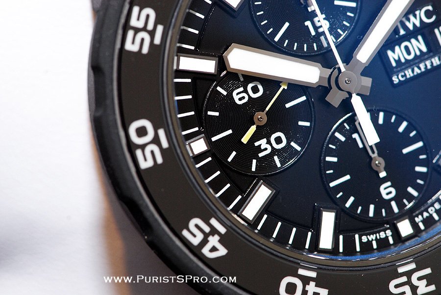 One drawback I noticed about this watch is if you tap on the bezel with your fingernail, it feels as if the entire bezel is made out of plastic. One gentleman who walked in the Boutique to see the new pieces pointed this out to me, and I agree with his observation. Doesn't feel that sturdy IMO. The other Aquatimers do not feel this way, just this one.