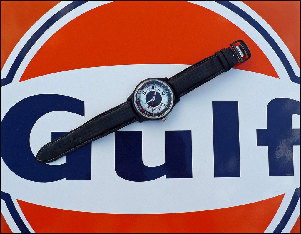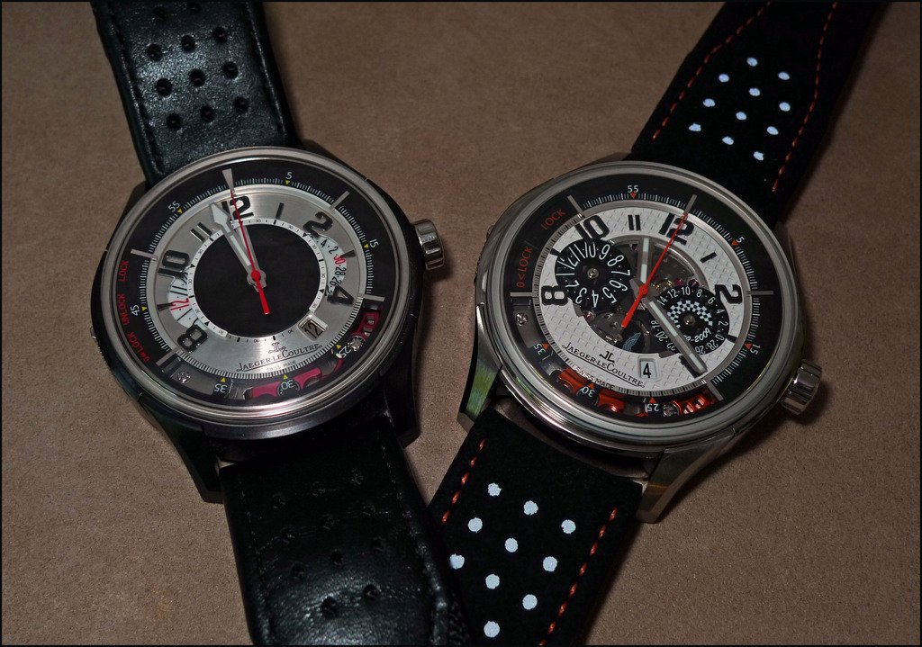 The differences are about the " racing " finish of the dial: Orange Chrono second hand, black carbon fiber counters of the Chronograph, orange 5 minutes dots and Chrono Caliper, and, of course for the Non PVD version, the white dial.