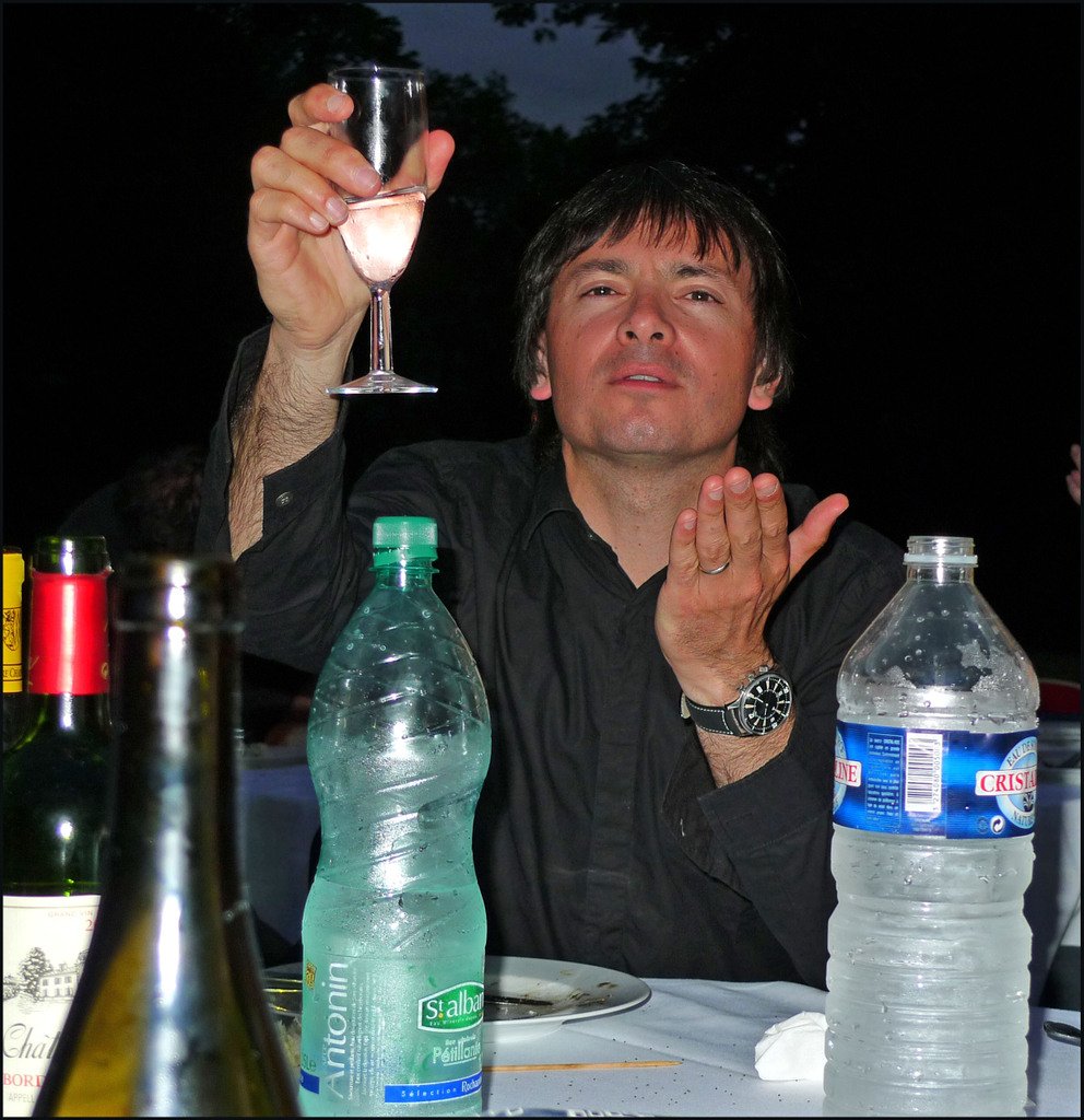 Here, Jerome drinking a big glass of water...