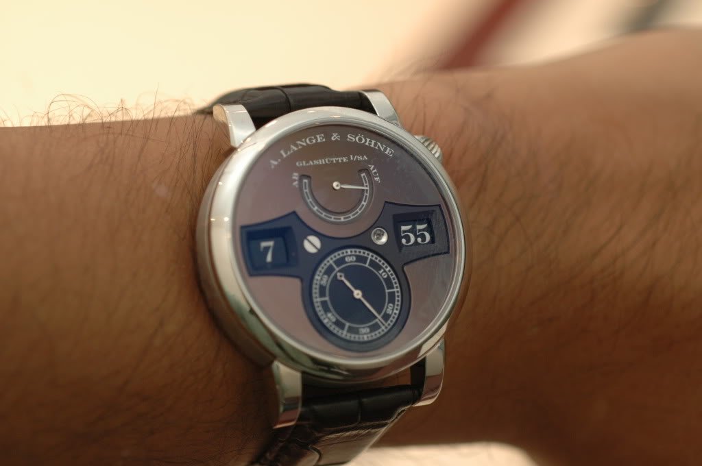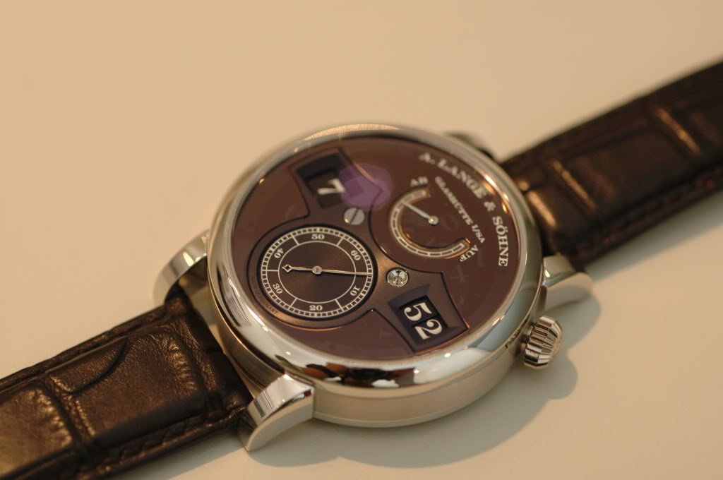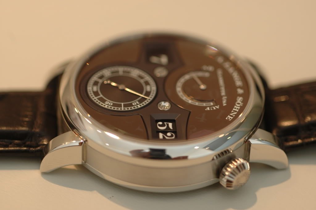 I like it quite a lot! I think the dial is much cleaner and more legible - measuring 38.5mm, a very nicely proportioned watch with very practical functions, indeed filling in a large gap in Lange's collection.