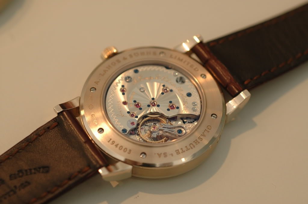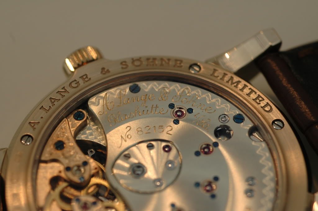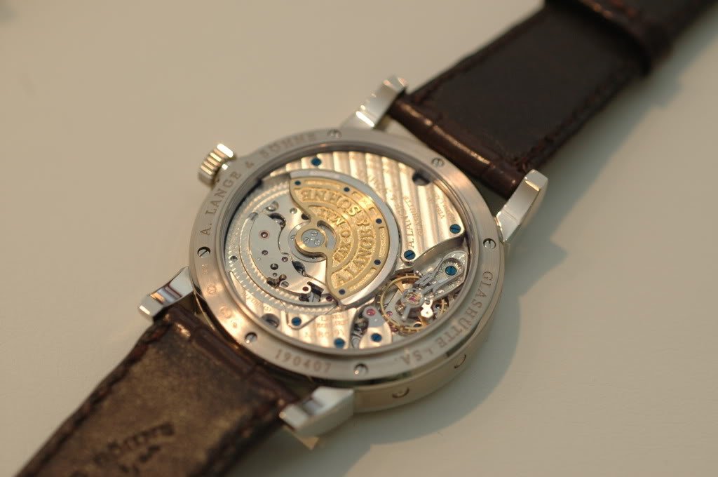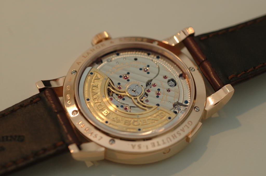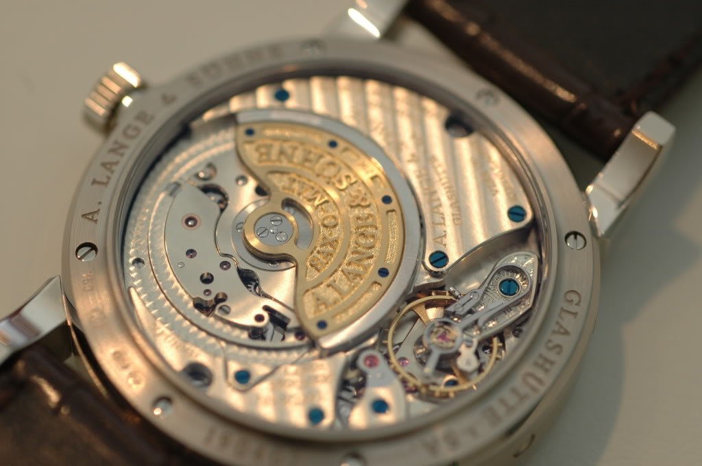 It has a completely new automatic movement (and I believe the first Lange with FULL SIZED rotor, made with gold, platinum rims, and spokes from copper beryllium).