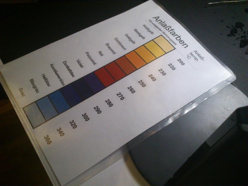 We were told to heat up the screws and wait for them to turn blue - a certain cornflower blue or in this case 290deg Celcius as seen in the guide below.