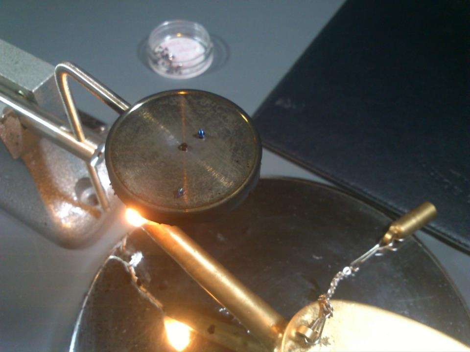 Another image showing some lasers used to check the operation of balance wheel/movement.