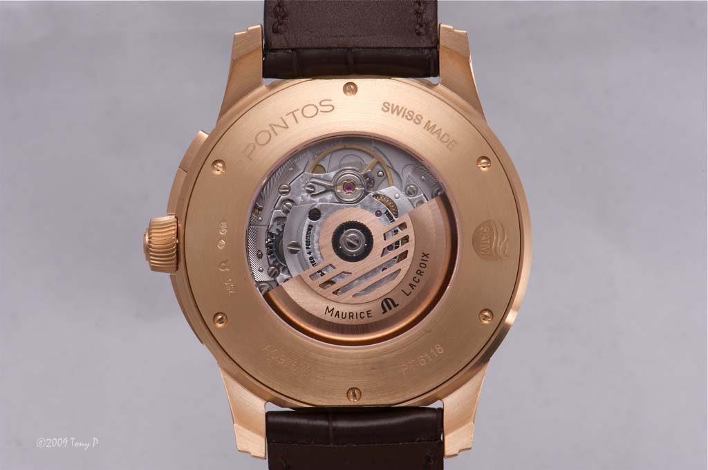 Flipping the watch over gives rise to a slight disappointment - the familiar small-movement-inside-a-big-case syndrome.