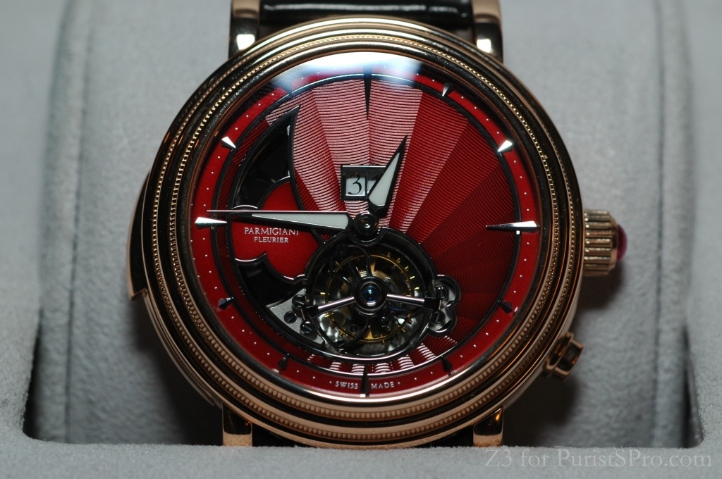 This year Parmigiani introduced the Tonda 1950 - paying tribute to the year that Mr. Michel Parmigiani was born. The titanium piece is a special Limited edition of 60 pieces, and has a nice grille dial that offers a glimpse of the gear train.