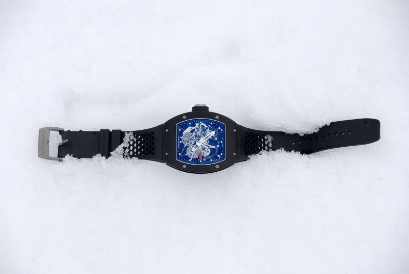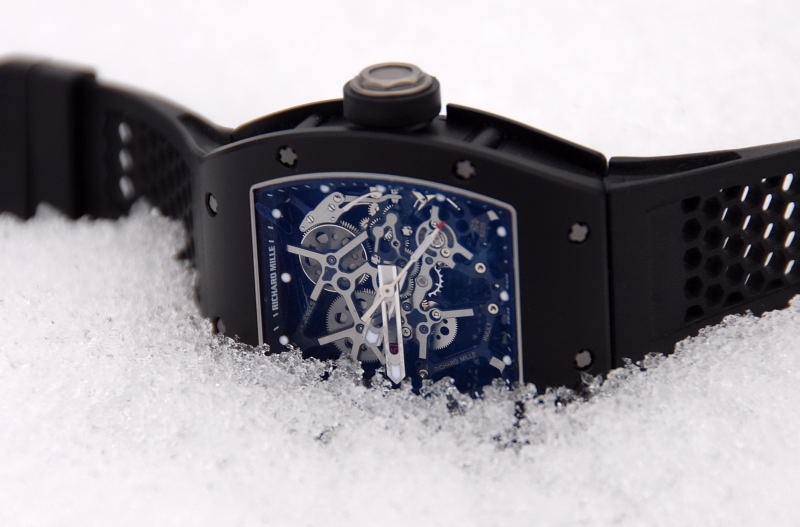 Normally, I donât wear a watch skiing and am reliant on someone else telling me the time or just skiing until I get tired (doesnât take too long these days!). Normally a watch will irritate my wrist with the ski jacket and the fleece underneath. But you really do not know the RM035 is on the wrist. So I tried it out. Given my skiing ability these days this is definitely a shock resistance test! The falling used to hurt my pride more than my joints, but these days, its more the actual fall that hurts so the watch was potentially going to get hit and hit at some speed. And despite the fact that the impact tests were given a number of tries, the watch came through with no problem. The time keeping was excellent and âchronofiableâ has meaning.