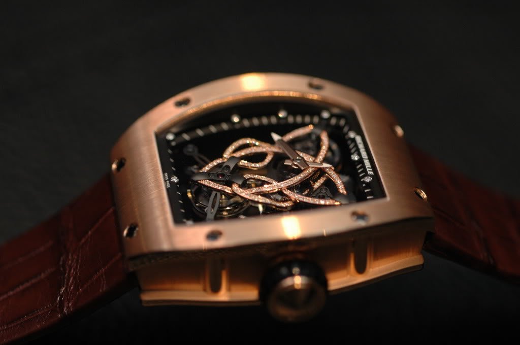 ..When you run through that series of pics, the aerodyne. celtoc knot, desk/pocket watch I am absolutley amazed by how stunning ( and that is not a word I use often ) many of the RM pieces are. He must be incredibly proud to continue coming up with such absolutley fantastic designs. On these photos you can really see the depth & complexity of the pieces, in my mind there is nothing else on the market that gets close to the RM appeal. I think as the years go by RM is going to gain an exceptional