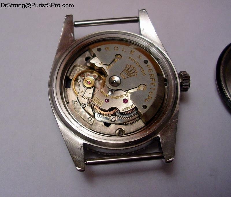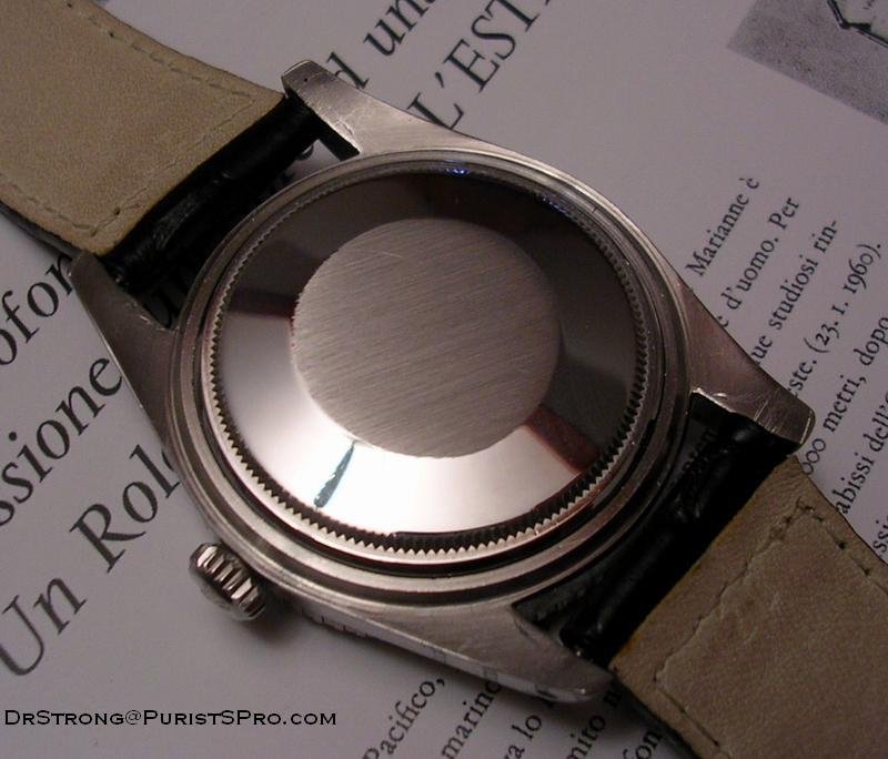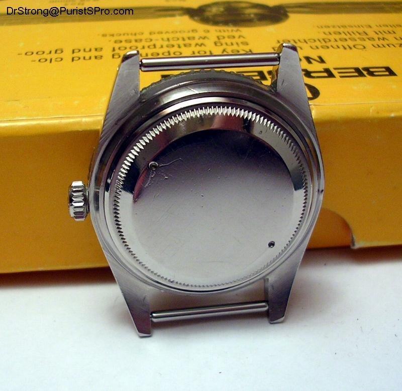 The outside case-back of this watch has no special engraving either, but you can see that it has been drilled to be opened without the appropriate Rolex tool. This sometimes happened on military watches that needed to be opened urgently during operation, when there was no watchmaker in sight.