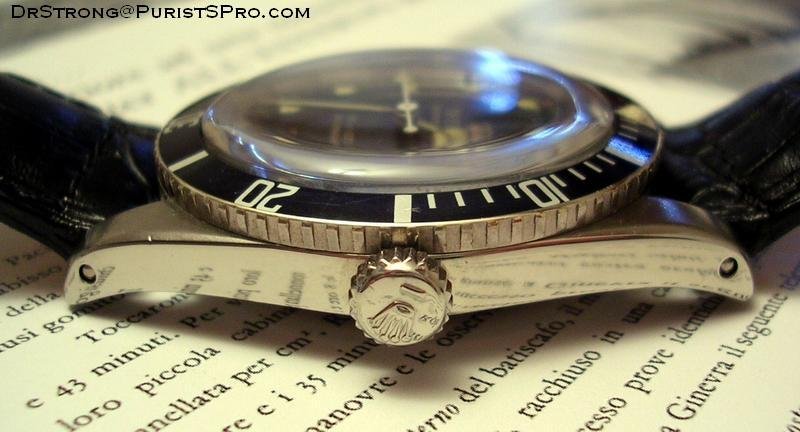 In less than 10 years of production, the non-crown-guards (aka James Bond) models have transformed the Submariner into an iconic watch; the small crowns in particular are characterised by a relatively thin case associated with a 6mm winding crown, that give to the watch a timeless elegance. With its perfect size and thickness, this toolwatch can become dressy as soon as you wear it on the appropriate strap: