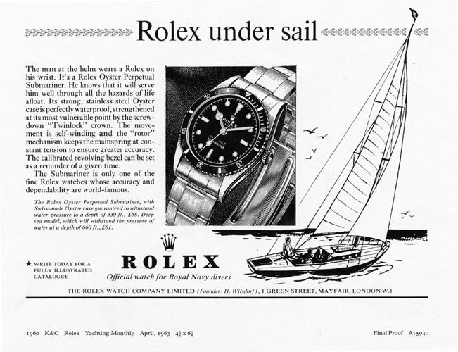 The design of the Submariner was based on the already existing Turn-o-graph ref. 6202: it had a bi-directional bezel with no minute markers between 0 and 15 min, a straight minute hand and the luminous dot was located at the very end of the sweep second hand. The very thin case with no protective shoulders around the 6mm crown was waterproof to 600ft and hosted Rolex cal. A260.