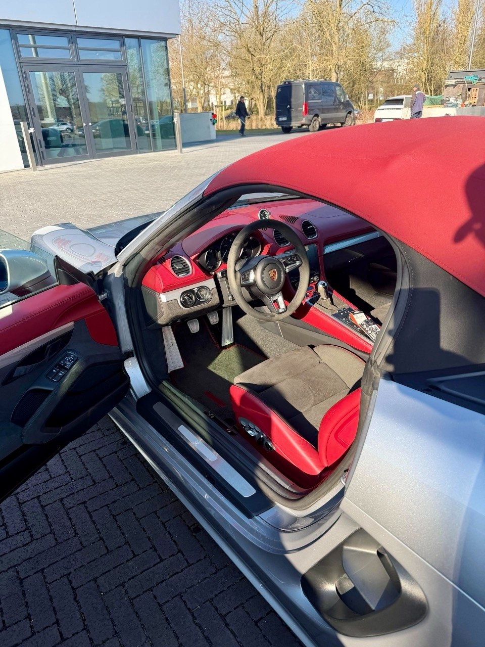 In my eyes one of the most beautiful convertibles, that looks as stunning with roof up as it does with roof down Naturally aspirated 4 liter flat 6, redline at 8k, this one has manual gearbox. It is perfect spec to me with GT Silver colour, silver wheels and Spyder Classic interior, making it look like 50-60s Porsche 718 RSK/550 Spyder.