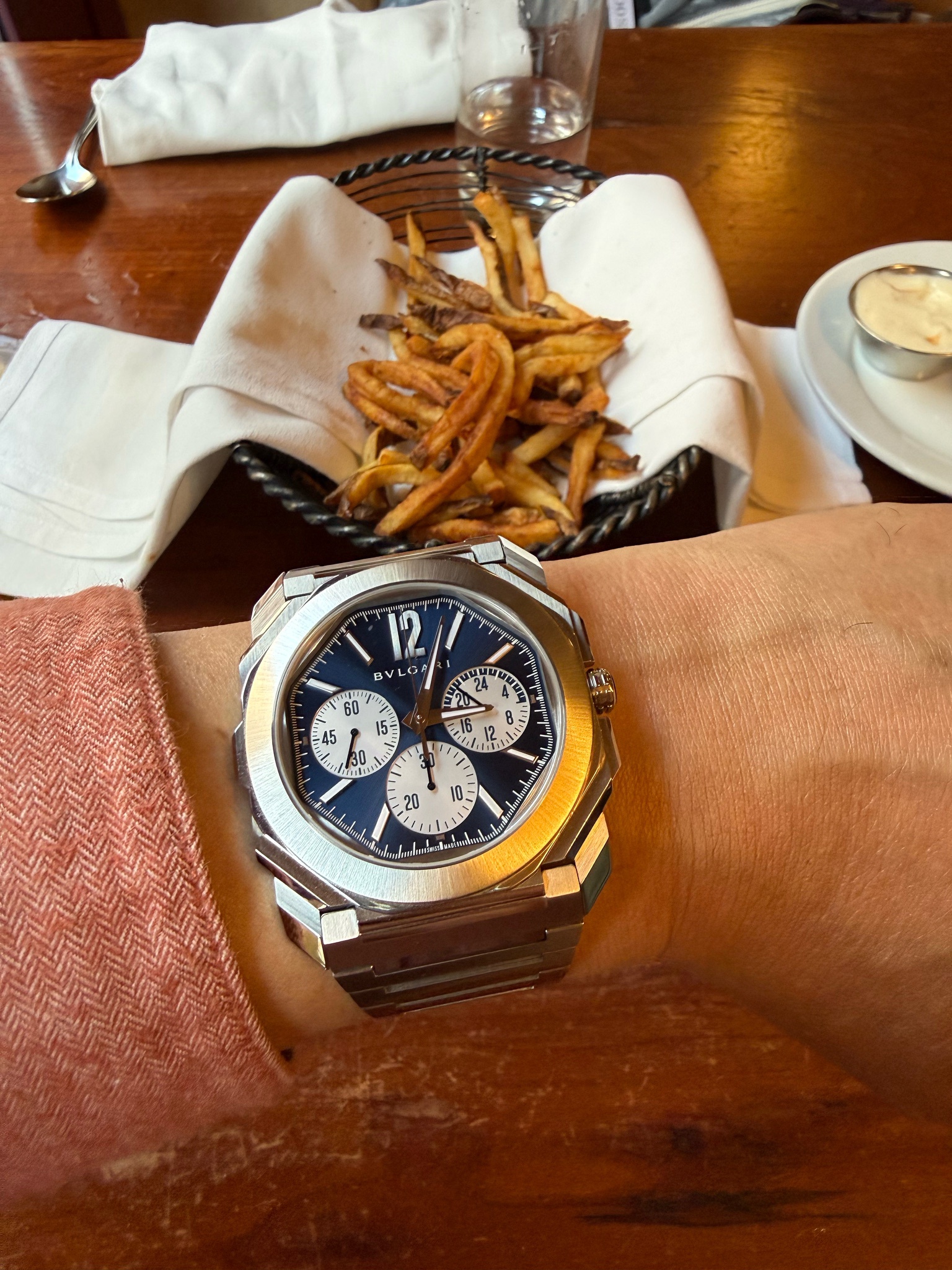 I enjoy wearing Octo Finissimo but it has two major issues: 1) it wears MUCH larger than an equivalent round cases watch and 2) the bracelet clasp with friction pin closure is not secure at all. This new version addresses both .