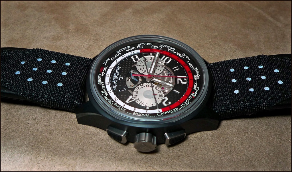 You will notice that the stitching and the inside part of the strap matches with the inner world time bezel and the Chronograph second hand.