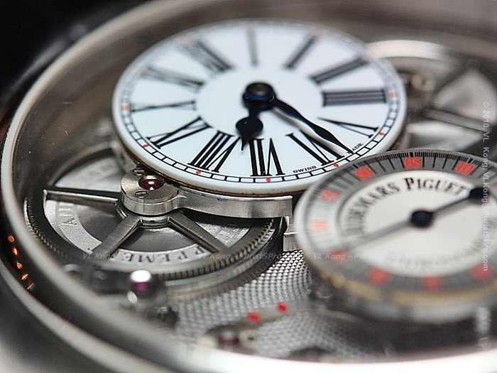 Jules Audemars handwound skeleton minute repeater with jumping hour and small second.