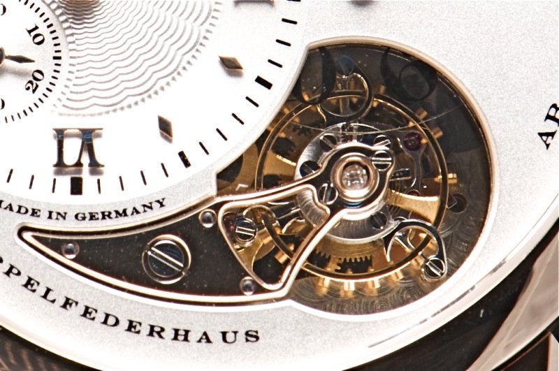 I note that Lange are moving away from the austerity of their previous three-quarter plates, which covered most of the mechanical goodies. Lately they are sitting their patented complications on top of the plate, the better for us to admire their intricacies -
