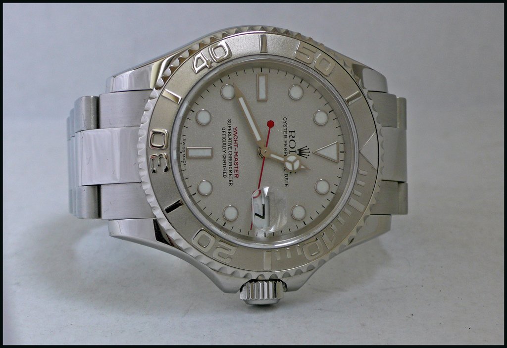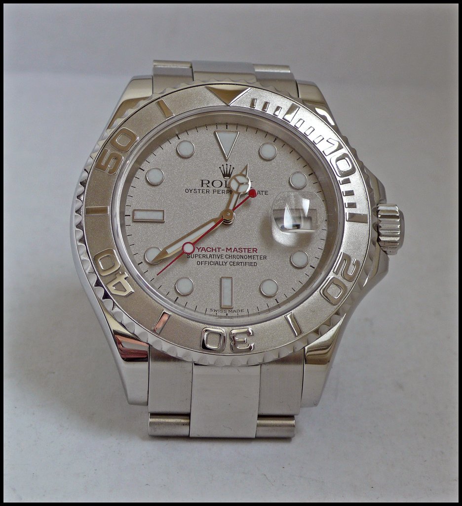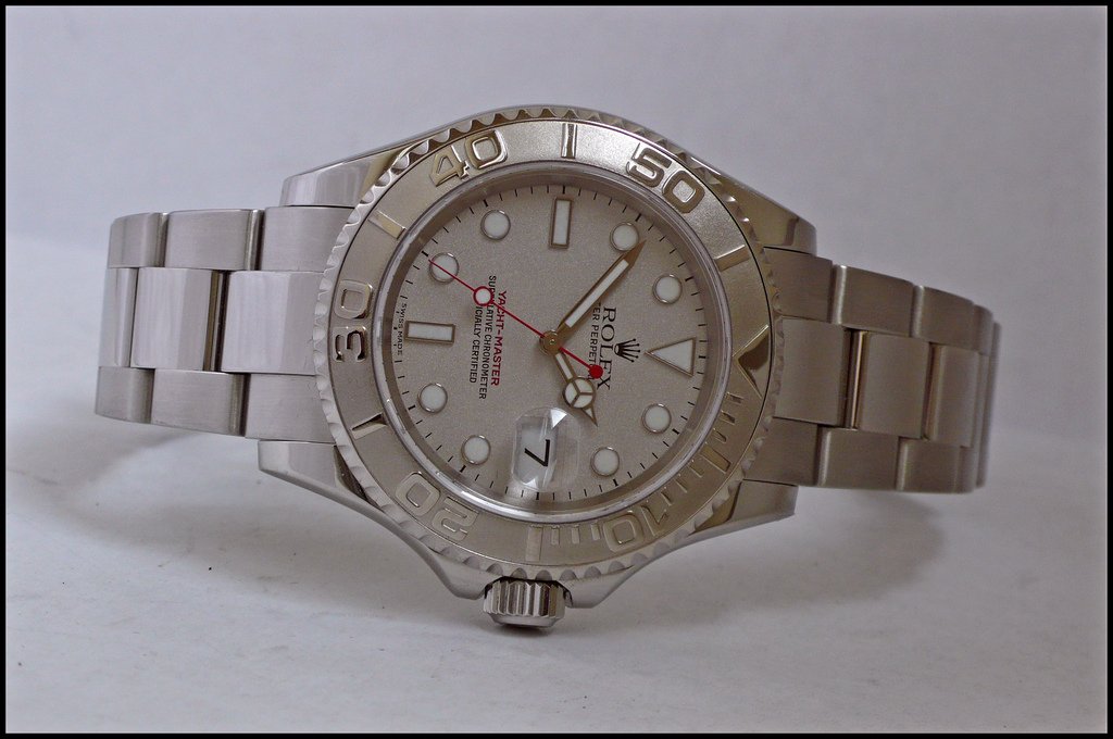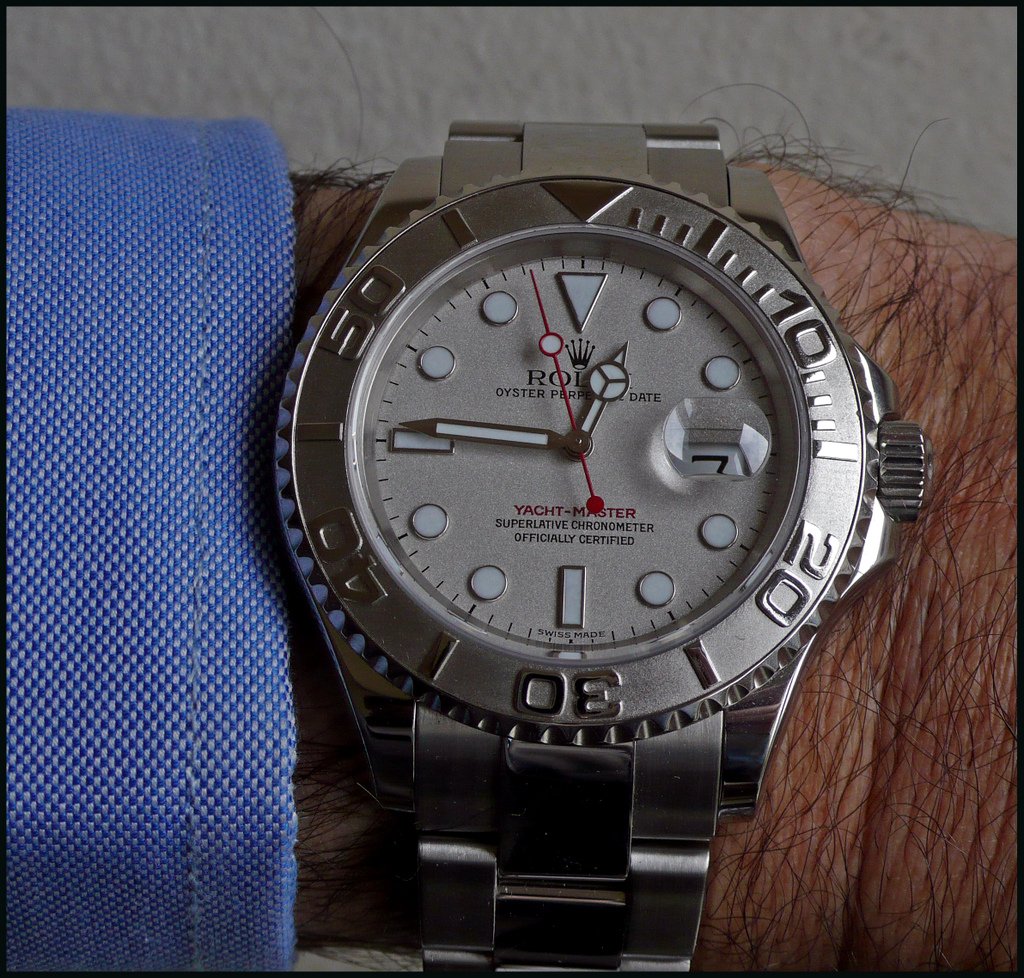This watch is really something, a strange mix of sport watch, and dressy too, with its general allure of a submariner, but with the platinum dial, and bezel.