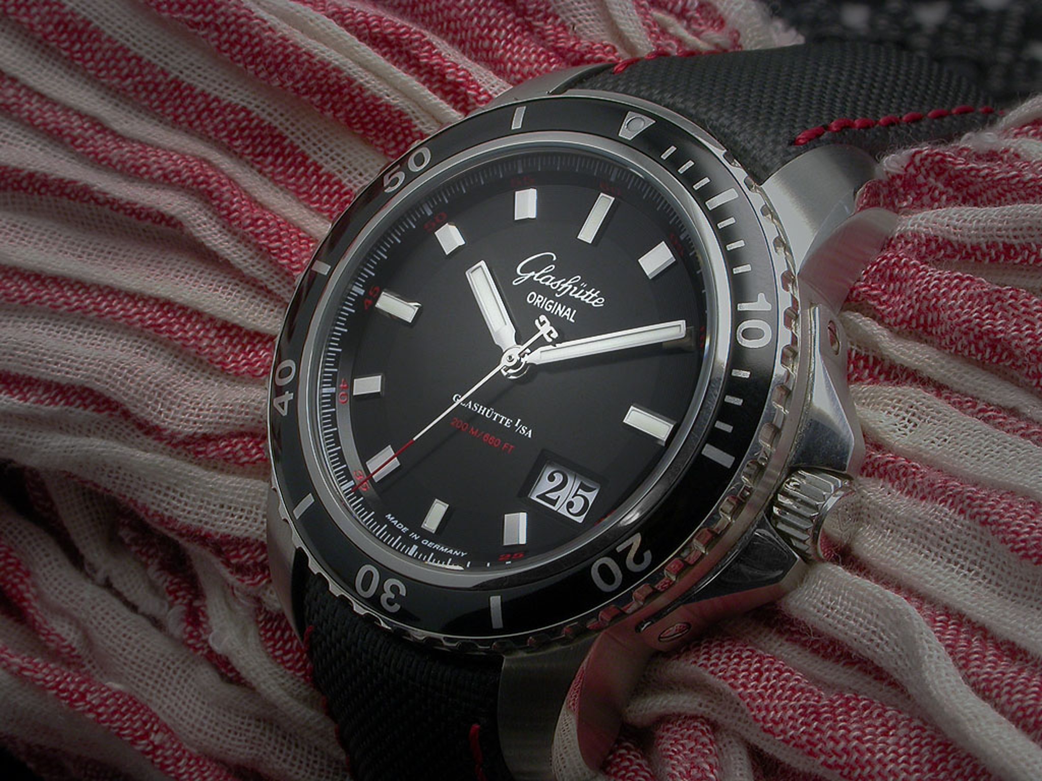 . . . how carefully Jocke prepared this photo: the red and white cheesecloth background accentuates the red and white print on the dial, enhancing the subliminal effect of the presentation. Brilliant, Jocke . . . with highest regards, Art