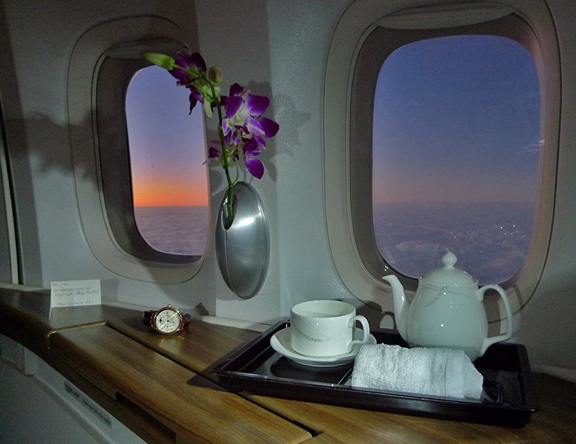 Hi Thomas, thanks for your sensitive photo of how to have a stylish cup of tea 35.000 feet above the ground! But besides all the cosiness your pic suggests (sunset above the clouds, teapot and cup, hot towel and orchid decoration), I feel it has a strong ...