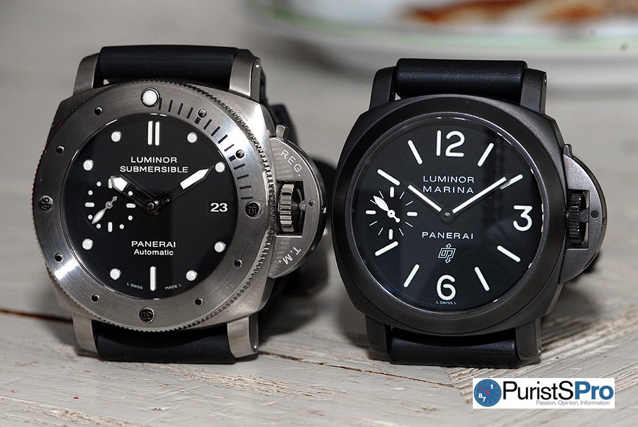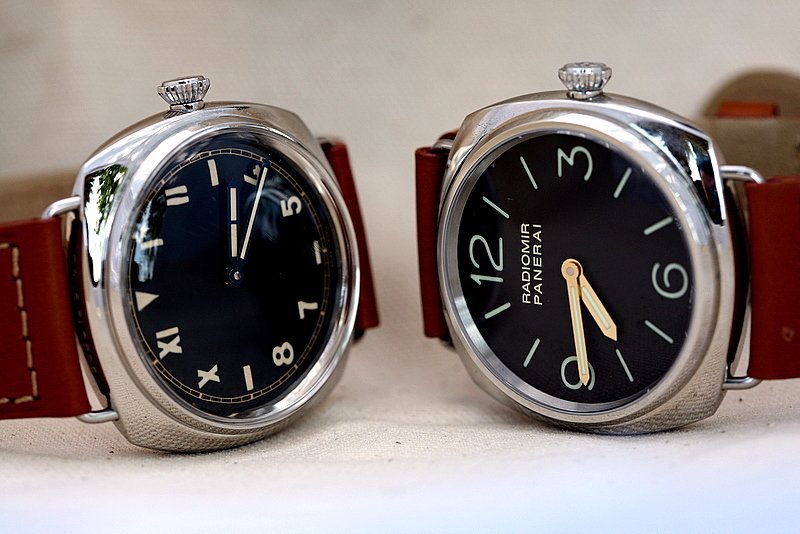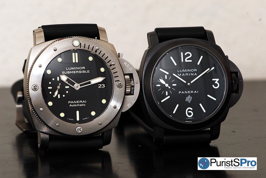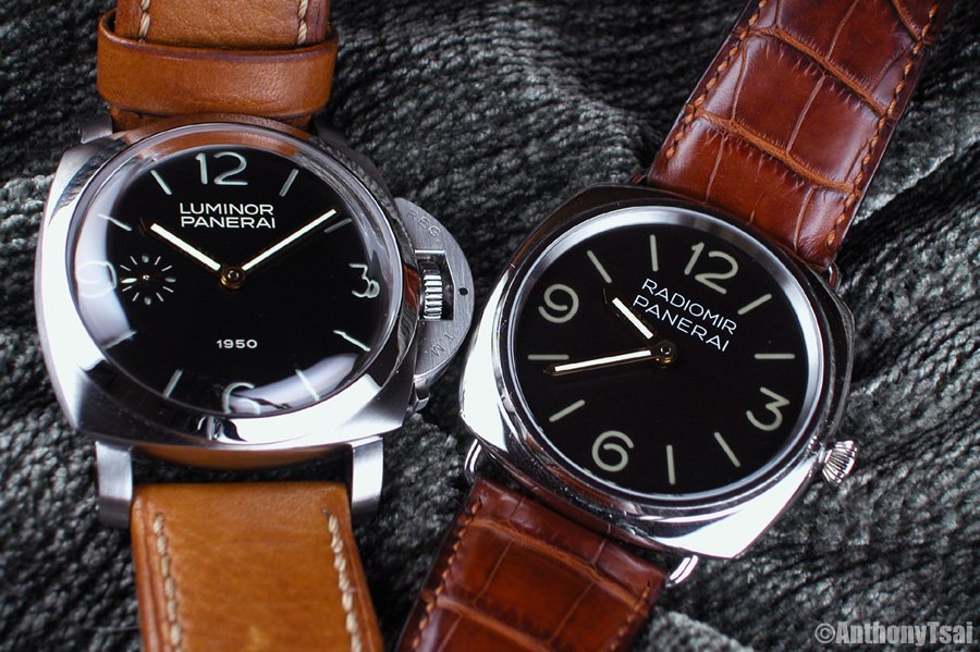 Comparison shot of a 44mm Luminor and 47mm 1950 Luminor