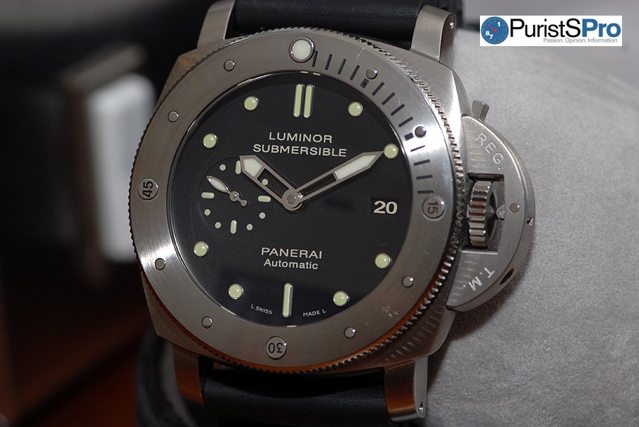 Today I will be reviewing a 47mm Luminor 1950 Submersible from the SIHH 2009 collection and a Panerai I consider to be one of Panerai’s best bangs for the buck – the PAM305. Those who do not understand the allure of Panerai cannot comprehend why we Paneristi’s can purchase so many watches that “look the same”. Let me say this though, the PAM305 Submersible has one slight change in the dial which surprisingly changes the entire look of this Panerai and sets it apart from the rest of line which “look the same”.