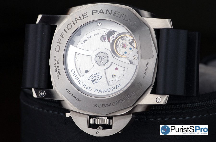 With a power reserve of 3 days, the caliber P.9000 is Panerai’s entry level in-house movement. Panerai is part of the Richemont Group family and developed the P.9000 movement in conjunction with Valfeurier, a Richemont Group movement development subsidiary. Some may argue the P.9000 isn’t technically an “in-house” movement, but in my book I still consider it “in-house”.