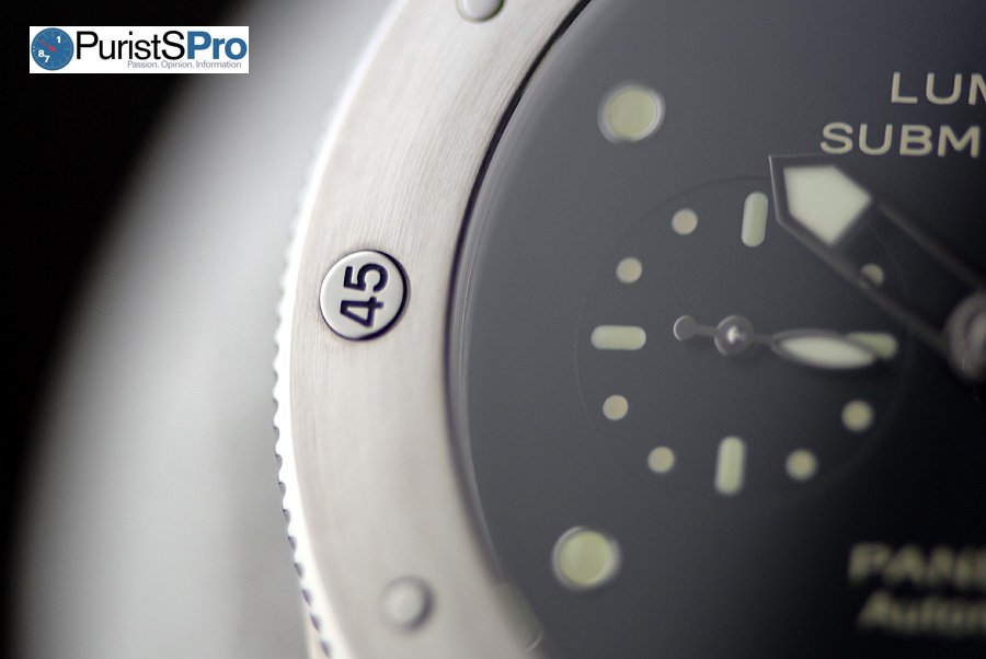 Notice how the 15 & 30 quarter hour markers are not aligned perfectly? They’re slightly crooked, especially the 30 minute marker. Please keep in mind that this PAM305 is a prototype and not a final production piece . I have asked several current PAM305 owners, and they all have said their final production PAM305’s have perfectly aligned bezel markers. So be rest assured that this problem is isolated only to this prototype, and bezel markers on production pieces are aligned properly.