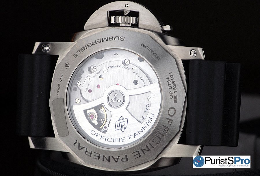 The entire movement is basically hidden from view (just like its older P.200X brethen), and I hope Panerai one day exposes more of the innards of the movement so the owner has a more visually stimulating view through the sapphire caseback. Even if there’s nothing to see, I still prefer a sapphire caseback over a solid caseback. Others may prefer otherwise but not me. Give me a sapphire caseback any day even if the movement is full of blemishes and scratches!