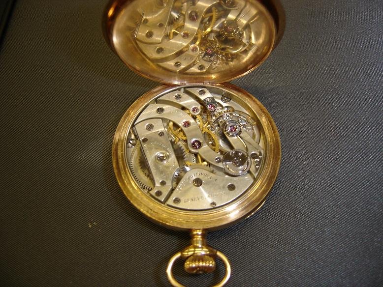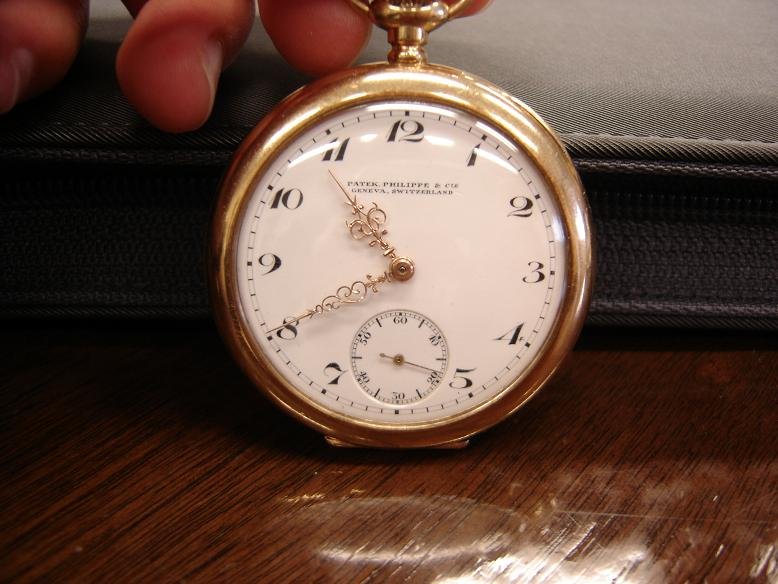 1/ Is this a genuine PP? Inside the case there are several hand engraved numbers in small print. I think the watchmakers that serviced the watch over the years may have done these, but I'm not sure of that. According to my friend, her father would get a letter from the company every so often stating that it was time to send the watch in for service. These details would lead me to believe that it is genuine.