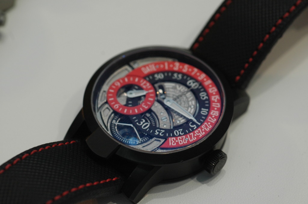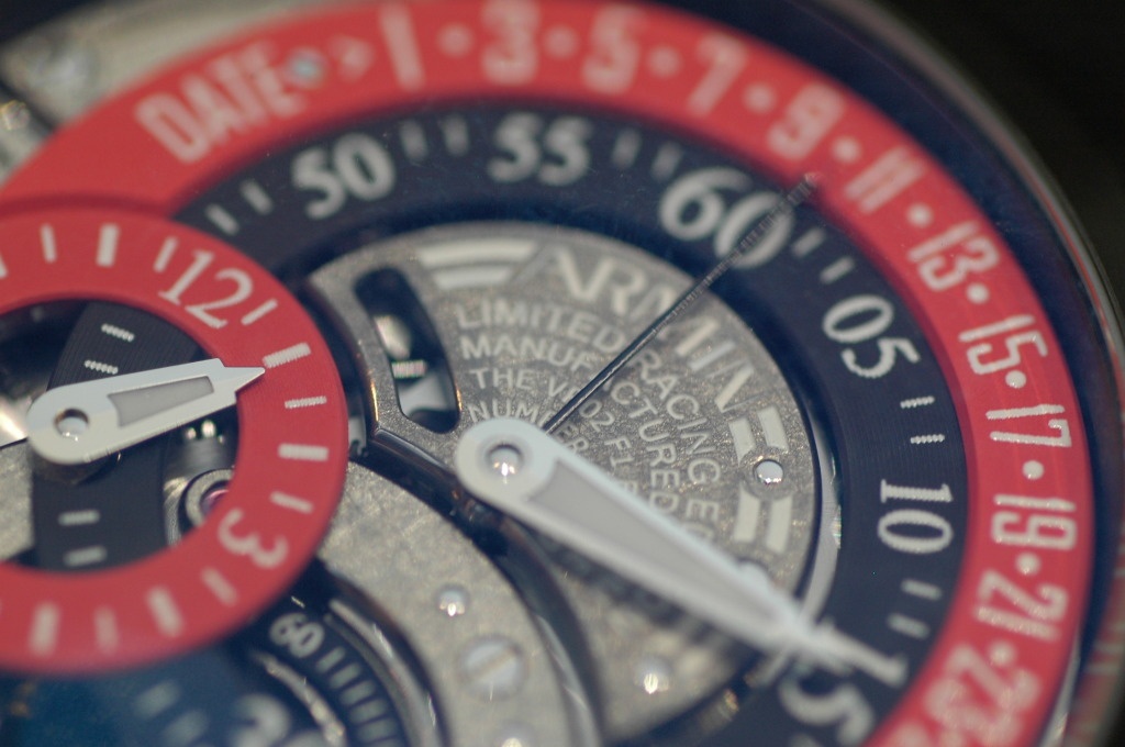 The Racing One week (Limited of 40 pieces) and the Racing Regulator (Limited of 100 pieces), featuring the new movements. These pieces actually have a piece in the movement from a part in motor racing (highlighted in my micro photos).