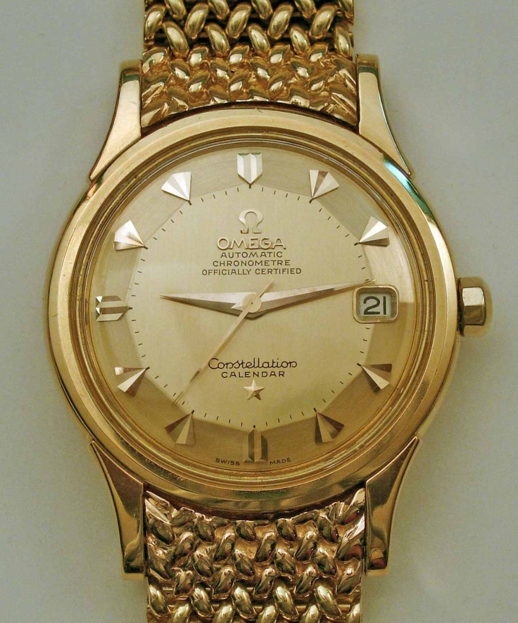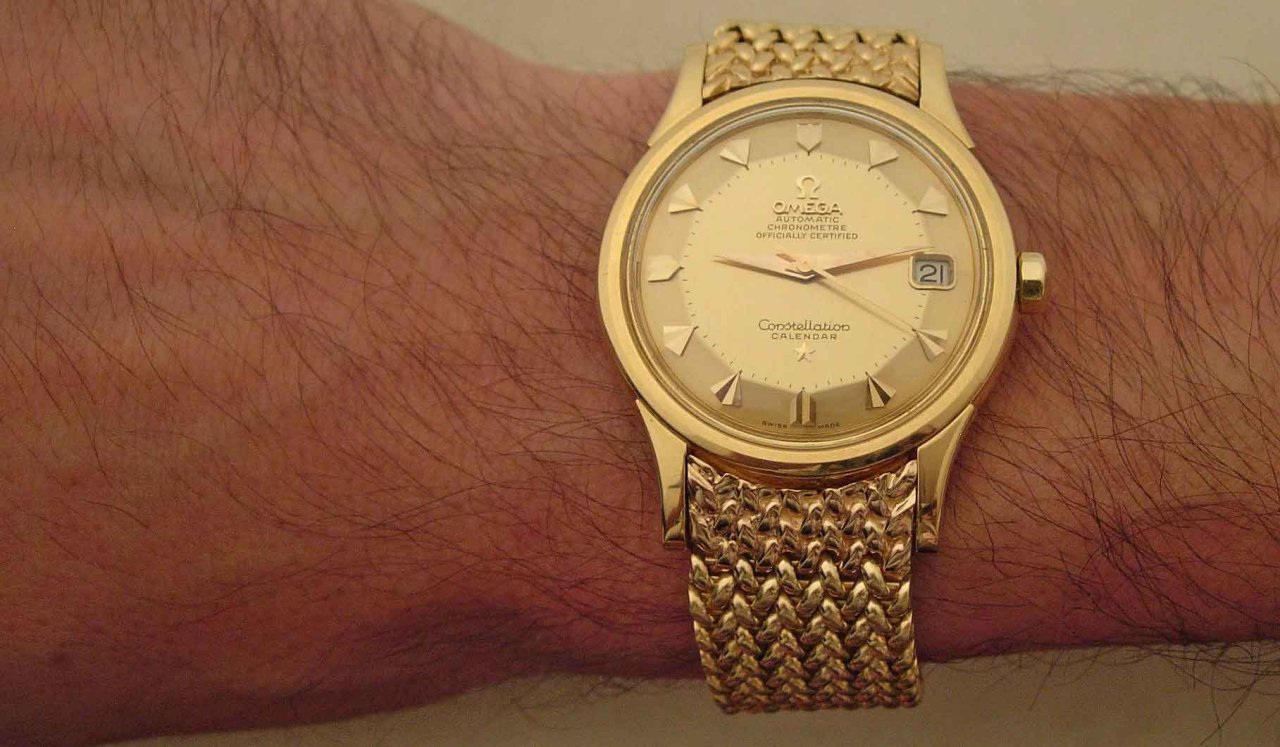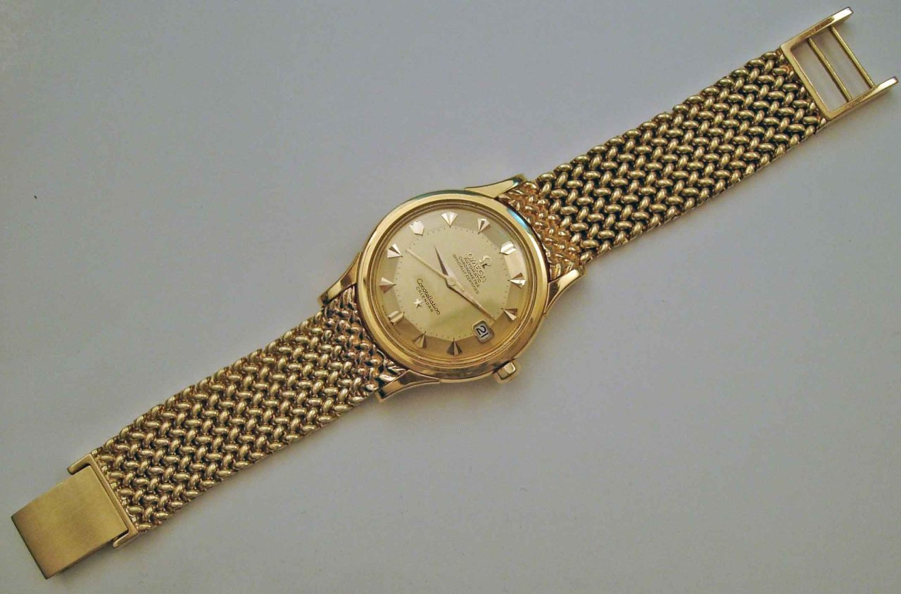 Been wanting one of these without the date for a long time, and feel hugely blessed to have gotten one with the date (which I do need, functionally). Never imagined that'd happen. It's a Piepan Connie (of course), cal. 504, c.1958, with original dial and original signed Omega mesh bracelet. Killer watch! [Thanks Phil!]