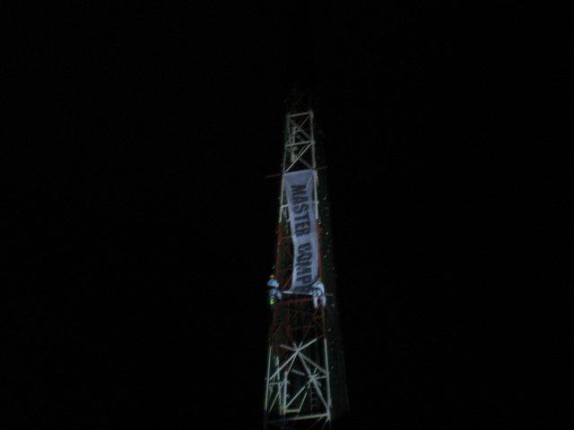 In the midst of the launch, two men were seen climbing down the nearby radio tower to unveil the Master Compressor banner for all to see. The strong winds blowing that evening certainly did not make their job any easier!