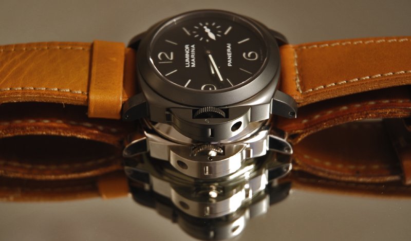 Explore stunning macro photography of a Panerai Marina Militare interacting with water, showcasing its robust design and the art of watch photography.