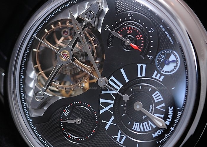 whereas the chronograph second-hand is slender hand with the Montblanc siglet.