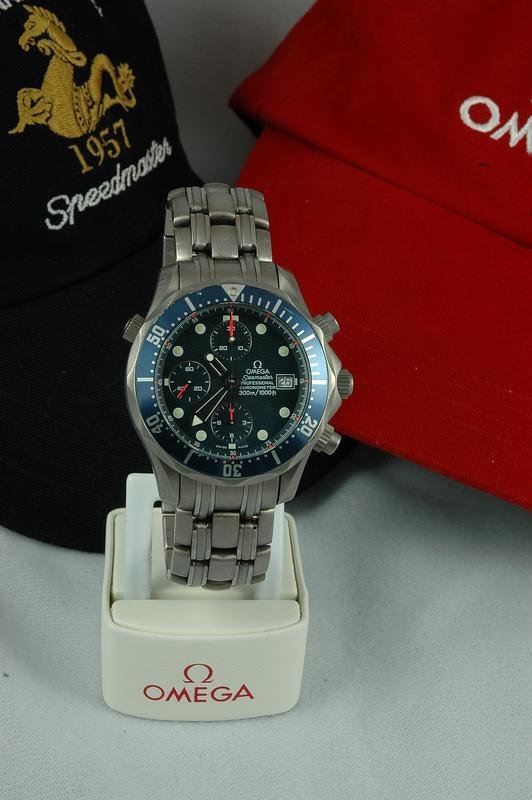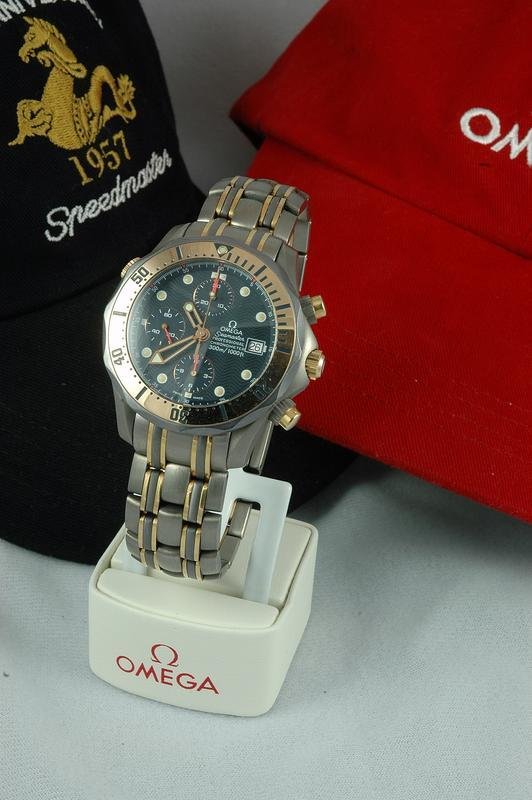 2001 Omega Seamaster Professional Chrono-Diver 2298.80.00; TI 378.0504.400 auto,TT/TT, blue wave/date-double chrono (1164)