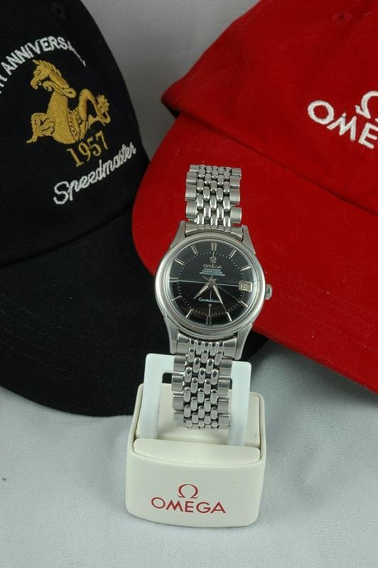 1961 Omega Constellation CK 14393 auto, SS/SS grains of rice, black pie pan/date (561)