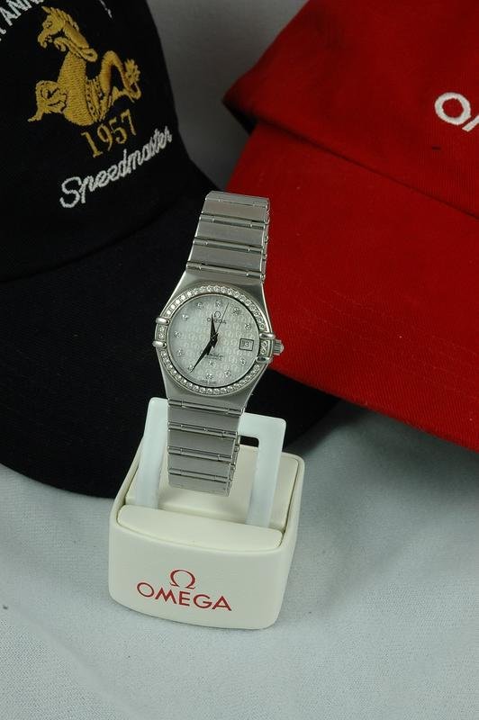 2002 Omega Constellation ladies auto, SS diam. bezel/SS, silvered w /diam. 50th anniversary (2520)