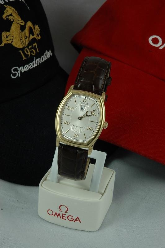 1991 Omega Louis Brandt II Date 5311.30 auto, 18kYG/leather, white guilloche/21k rotor (1119)[not pictured above]