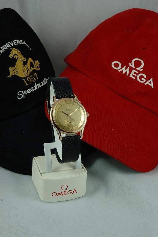 1948 Omega Centenary OT 2500 auto 2, 18kYG/leather, gold face/Jubilee watch (30.10 RA PC AM JUB)