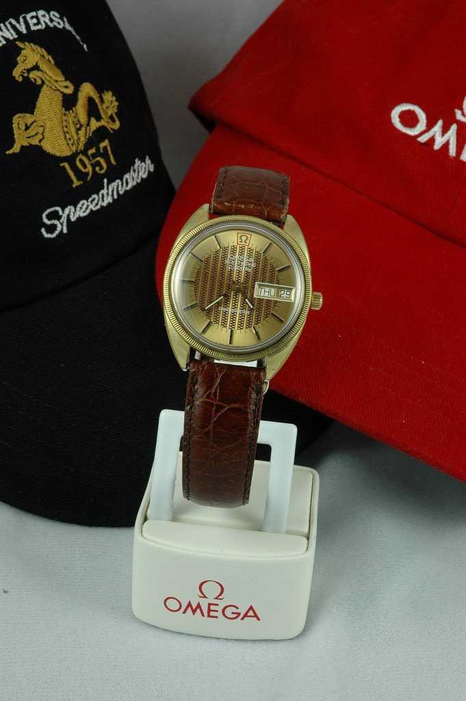1972 Omega F300hz 198.0045 tuning fork, 14kYGP/leather gold-brown/day-date chronometer (1260)