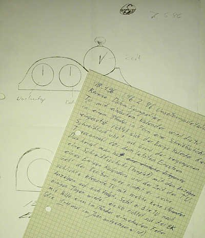 In the background: the first sketch from Enrico Santoni, the jeweller who created the case.