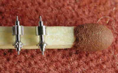 A pignon blank and a milled pignon, lying on a match.