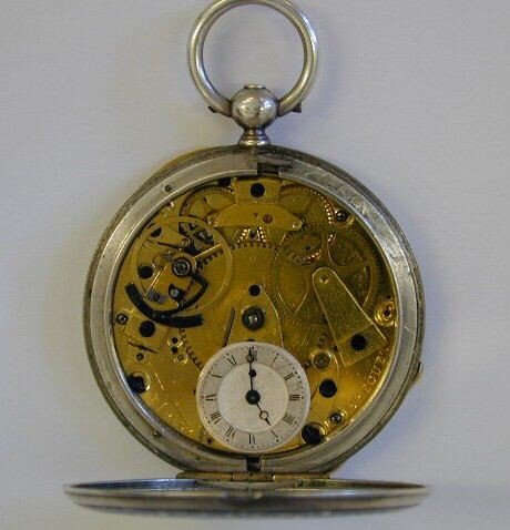 A number of things are interesting about it. First and foremost, its size; the case is 41mm in diameter, and the movement about 35mm! This makes the small dial about 15mm across! It used to be a "medallion ? tact" lady's watch, meant to be worn around the neck on a chain. The original case was apparently enamelled, and had a poem painted on it (I am almost kind of glad it is gone, as I would have hated it!!!