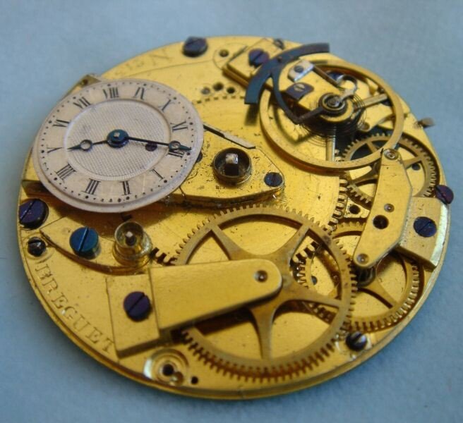 Now, given its size, here comes the 1M$ question: should I have a Breguet pocket watch replica case made for it, taking inspiration from one of the many "? tact" watches he made (well documented in the various literature), of do something totally off the wall and have a wrist case made for it (without altering the movement in any way, of course!)??? I think it would be quite amazing to be able to gaze at the front of that watch each time one looks at one's wrist... but I am not sure that I would want to subject that movement to wrist-wear.