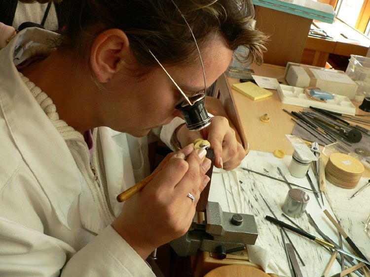 extreme concentration in polishing the sides of all the parts...