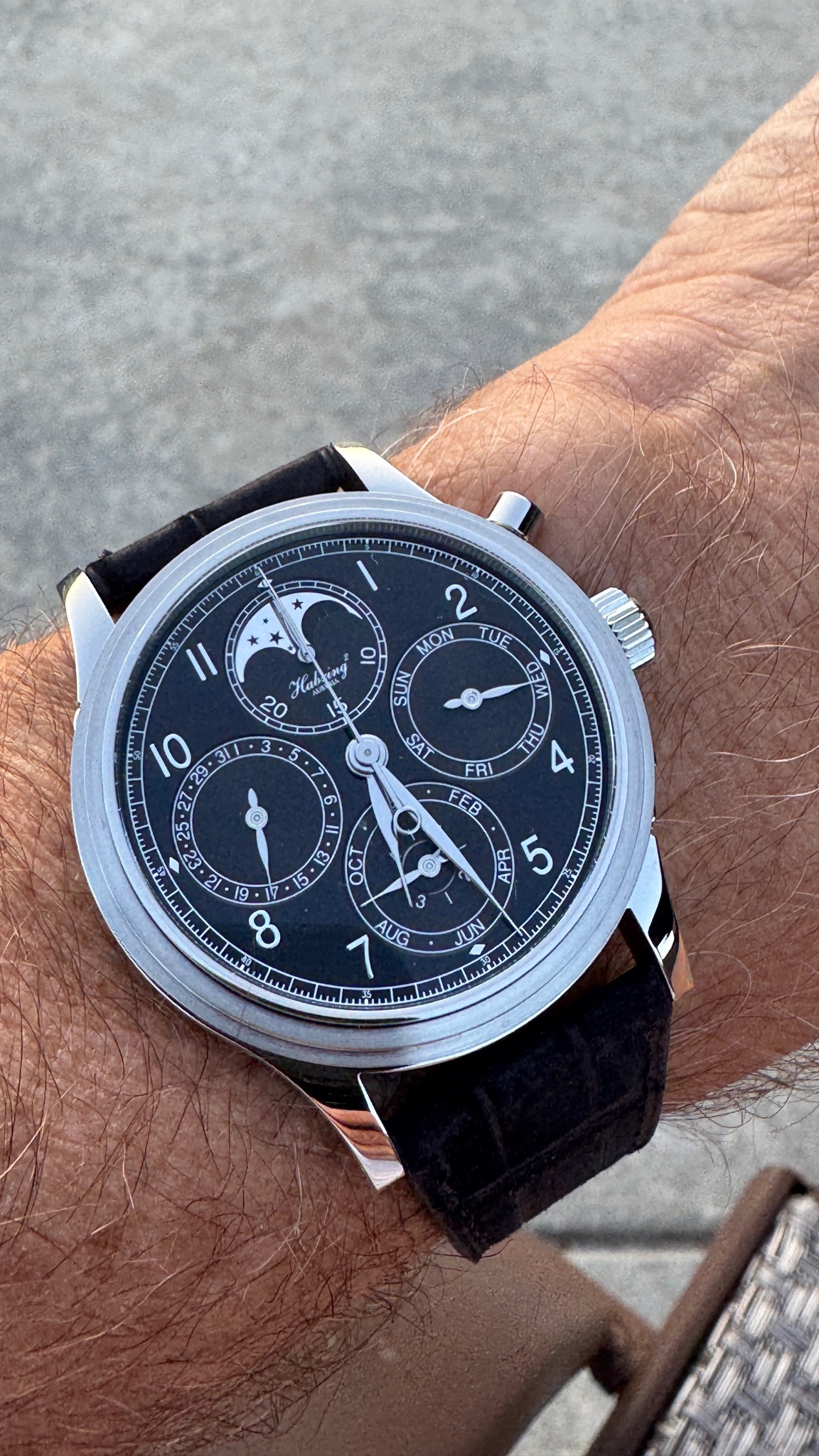 That really is a beautiful case shape with the raised bezel and I love just how clear and easy it is to read all the information. Except I am a little confused as to how you read the chronograph function other than in the moonphase dial and is it 30 secon...