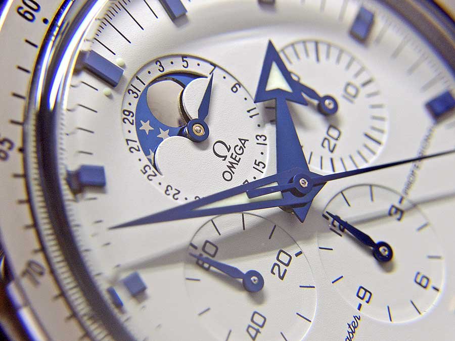 Example of a moonphase display, paired with a date hand, on an Omega Speedmaster.
