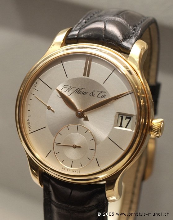 This Moser perpetual only shows the date and the month, neither weekday, nor moon phase is shown: