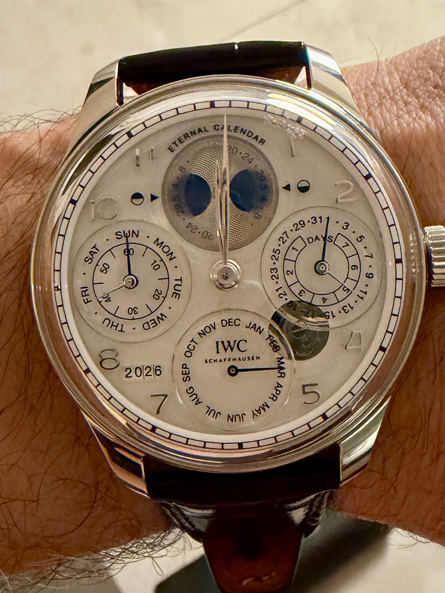 IWC Portugieser Perpetual Calendar Eternity: everything instant (in the 1. second after midnight). Unfortunately, I couldn’t use the first photo because it was so poor (my hands were trembling because I had always dropped its smaller sibling at midnight 😆). So this one was taken 42 seconds later.