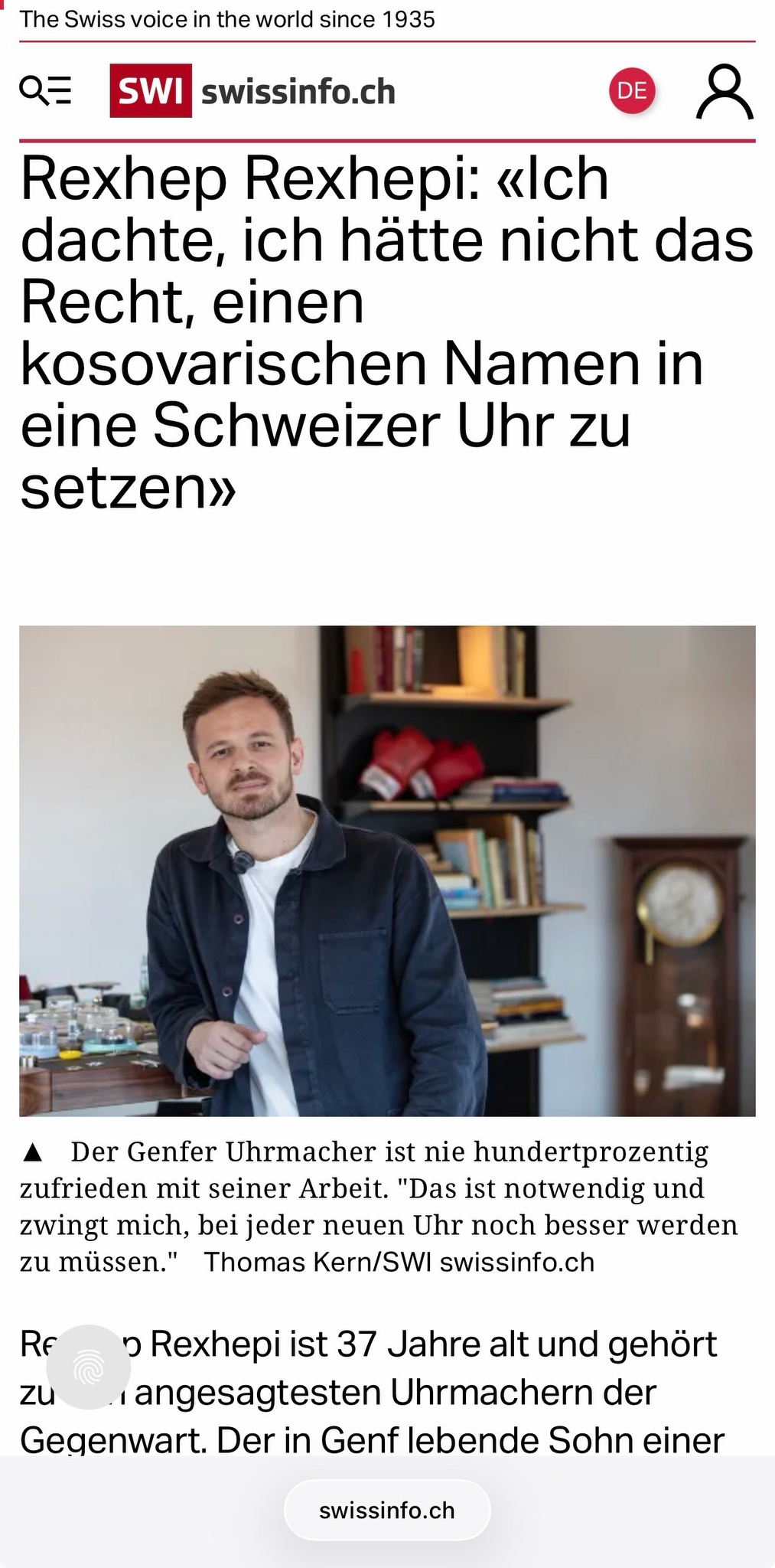 I am enclosing a screenshot from a Swiss news source in which Rexhep says that he thought he didn't have the right to put a Kosovar name on a Swiss watch.