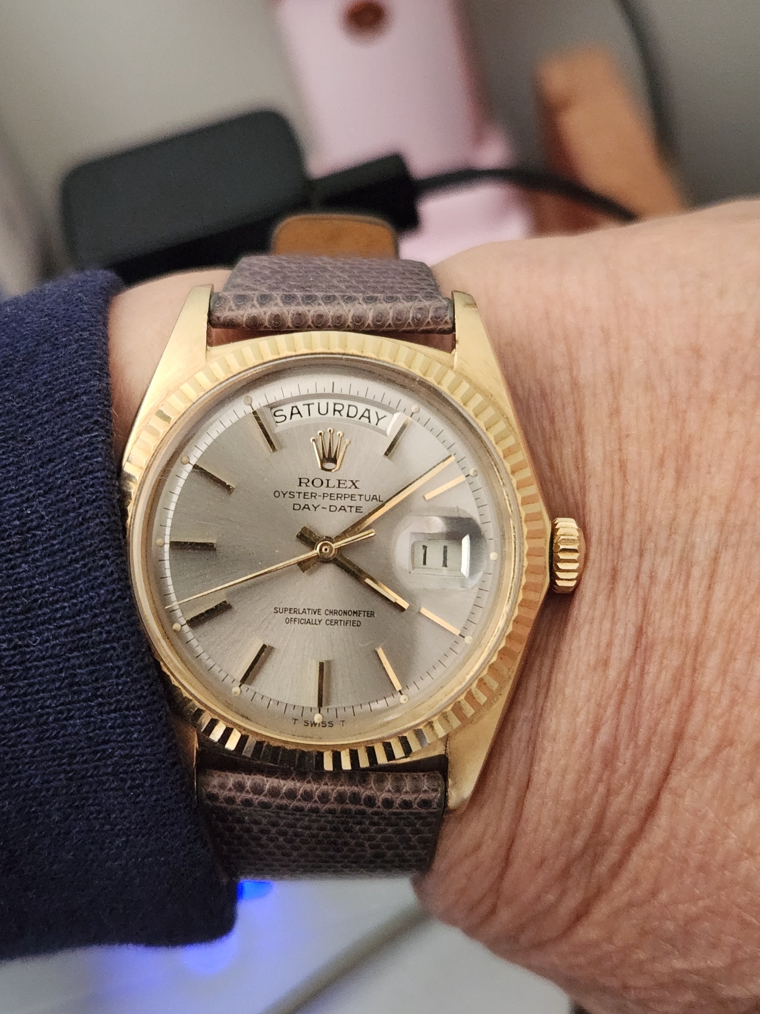 This is my very first to own Rolex President watch. I just love the vintage Rolexes. Watch is untouched and I prefer the look of the pie pan and the light Grey dial. Excellent size for my wrist.